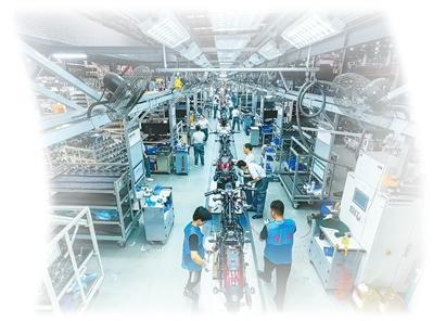 宗申赛科龙生产线上,工人在赶制海外摩托车订单。刘纪湄摄