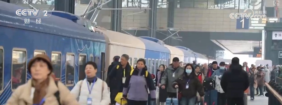11月26日,300多名游客在哈尔滨站登上Y783次旅游列车,开启了为期6天的“找北”之旅。这是中国铁路哈尔滨局今冬开行的首趟冰雪旅游列车。